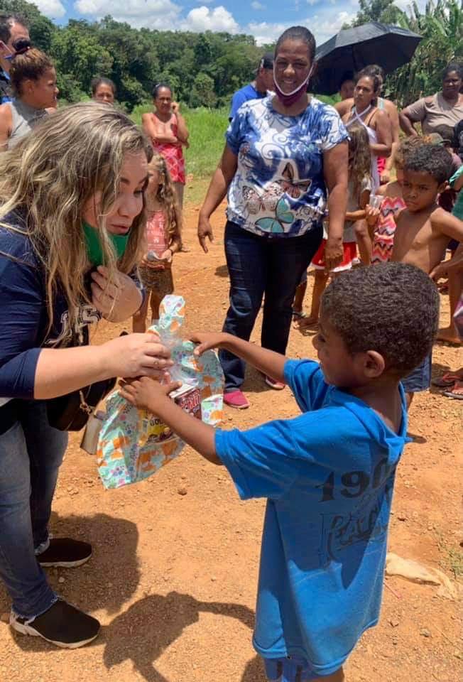 Ela, juntamente com uma equipe do projeto @dorcas_servir, realizaram uma evangelização de crianças na região. Dezenas de crianças ouviram a Palavra de Deus e receberam Jesus em suas vidas. Essa ação aconteceu sob a sombra de uma árvore. Ali mesmo, as crianças receberam lanche e foram presenteadas com Bíblias e literaturas da AMME evangelizar, para manterem seus devocionais.